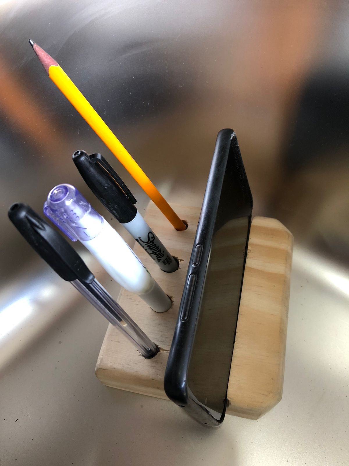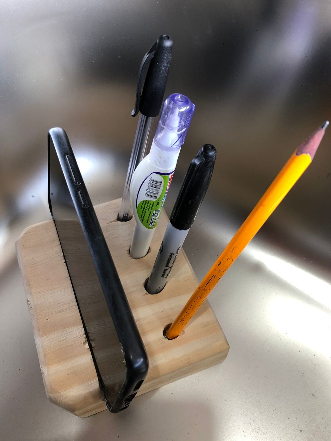 3 perforaciones para esfero, lápiz y marcador tipo sharpie