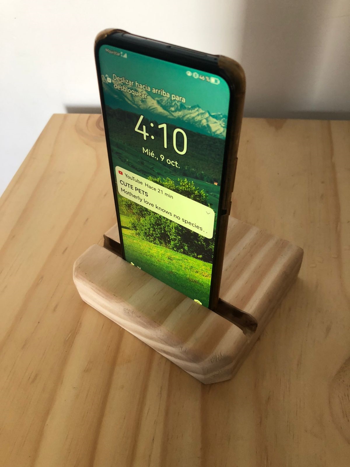 Porta celular de madera maciza en pino natural